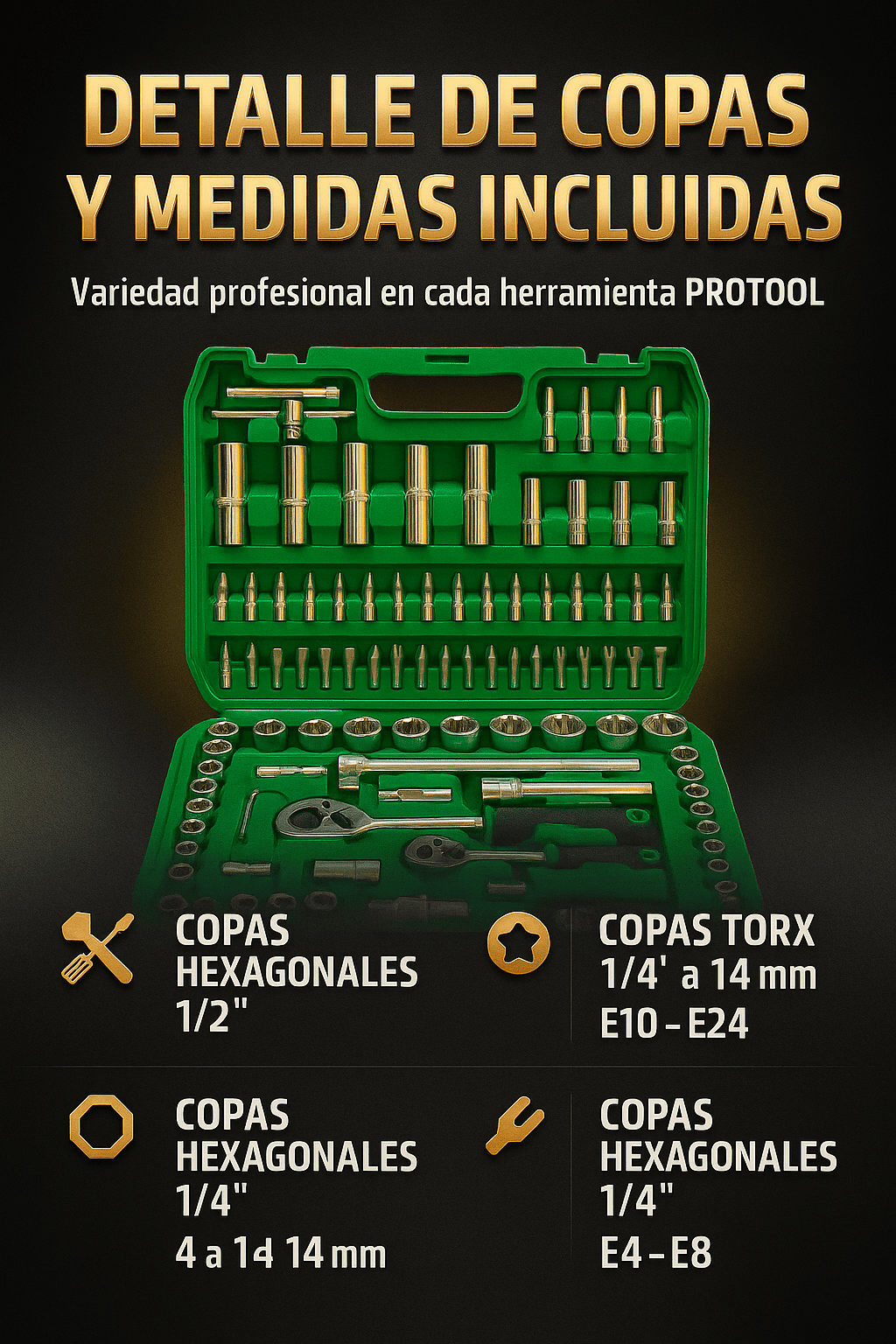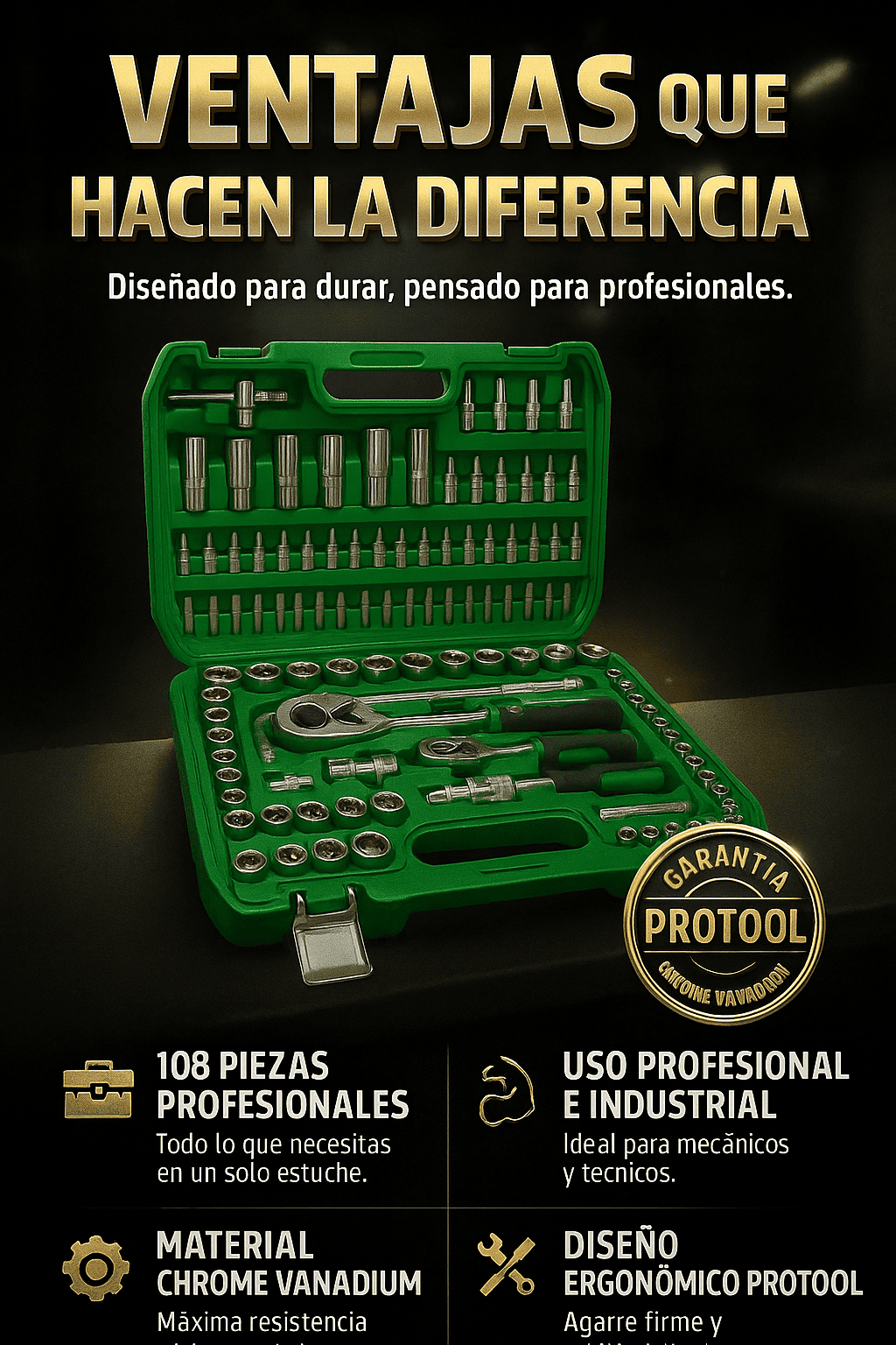 Producto: Juego de Herramientas PROTOOL 108 piezas – Chrome Vanadium