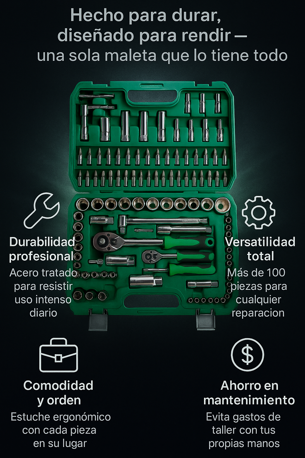 Muy completo para el taller. Recomendado para trabajos exigentes, el estuche es resistente.