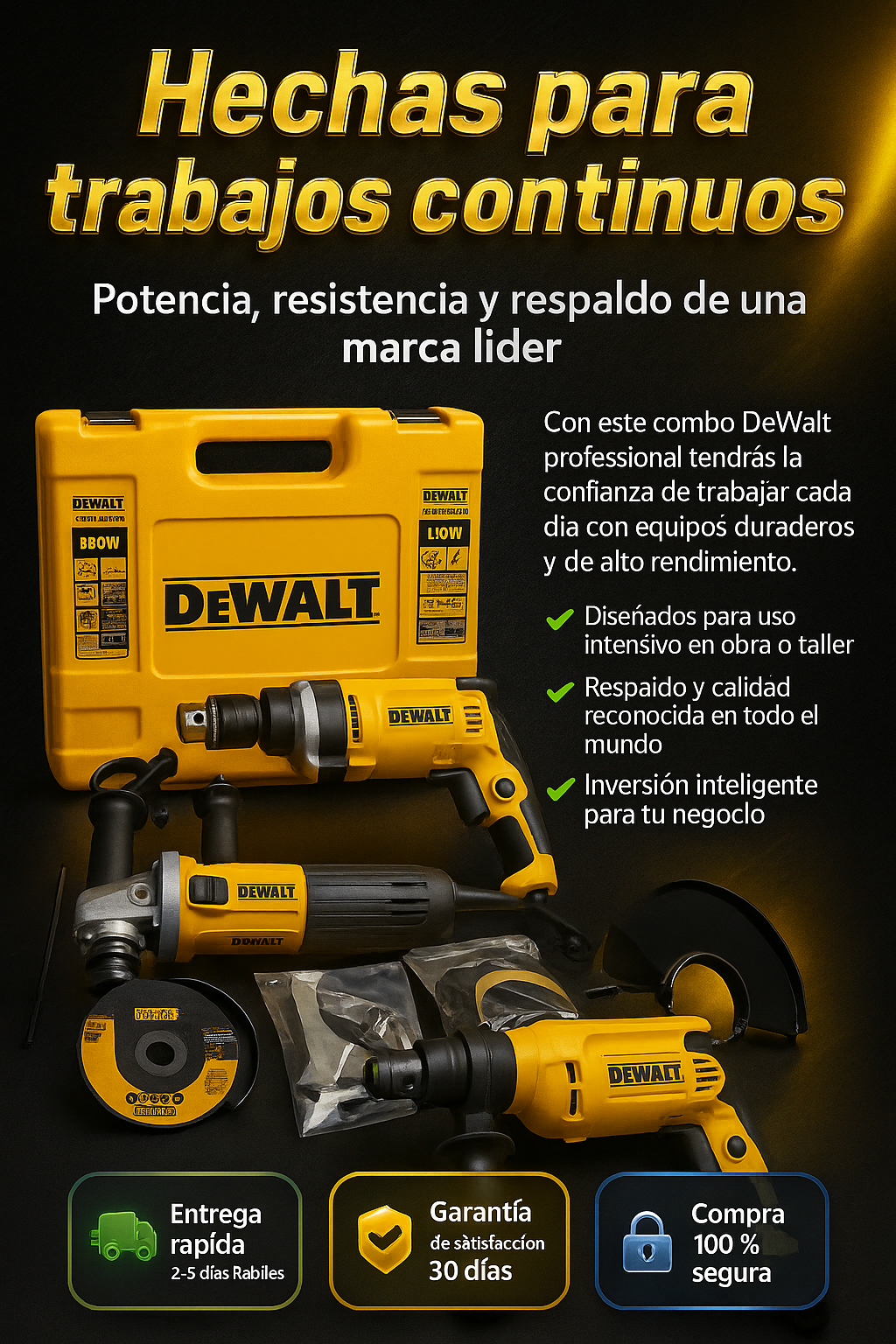DeWalt nunca falla. Ya llevo varios proyectos de obra con este combo y funciona excelente.