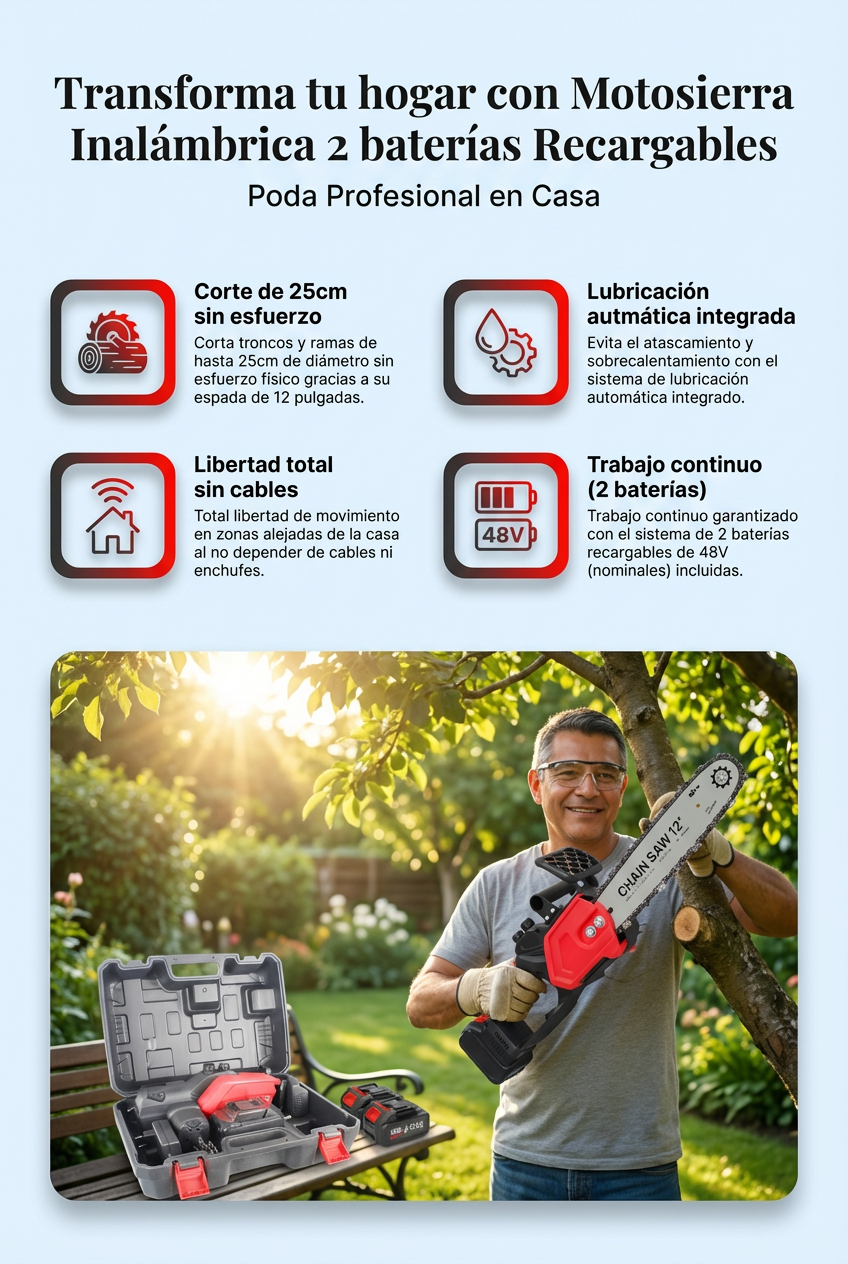 Producto: Motosierra Recargable 2 Baterías Alto Rendimiento