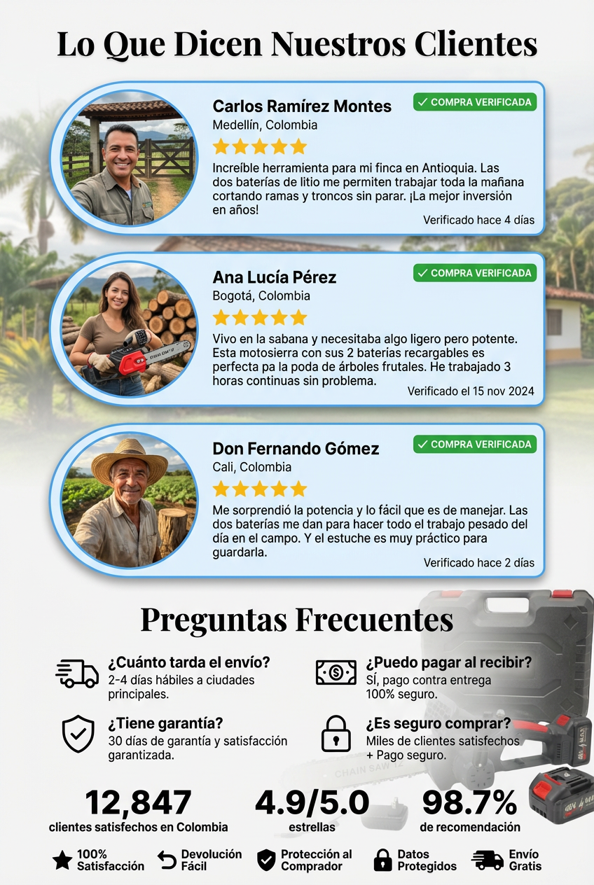 Excelente para trabajo en finca. No hace tanto ruido y tiene mucha fuerza. Me sorprendió la autonomía.